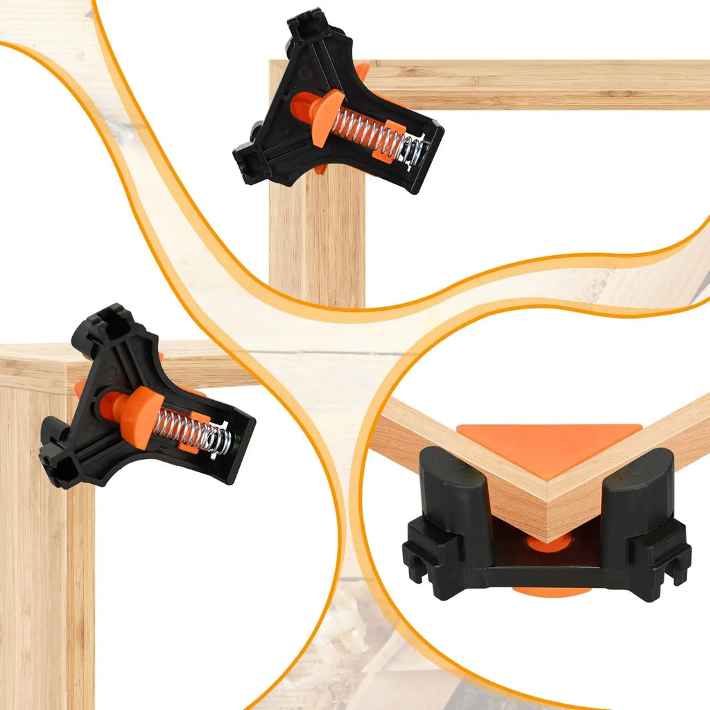 Projetadas para acomodar painéis de 1/4" a 3/4", as braçadeiras oferecem fixação firme mesmo quando as espessuras são diferentes. Perfeitas para ângulos de 90° e juntas em T, mantendo cada peça no alinhamento ideal.