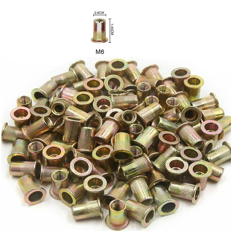 Com cabeça plana (chata) e encaixe firme, a porca rebitável proporciona um acabamento limpo e discreto. Seu design facilita a instalação e garante uma rosca estável, ideal para aplicações que exigem precisão e bom acabamento visual.